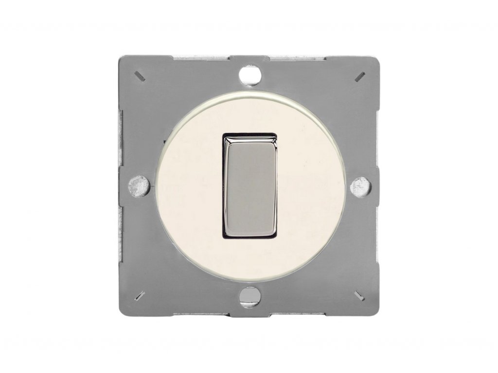 Kolébkový vypínač ROCKER - 1-modulový křížový (č.7) 10A 1-pólový MODULÁRNÍ - matně bílá / chromová kolébka