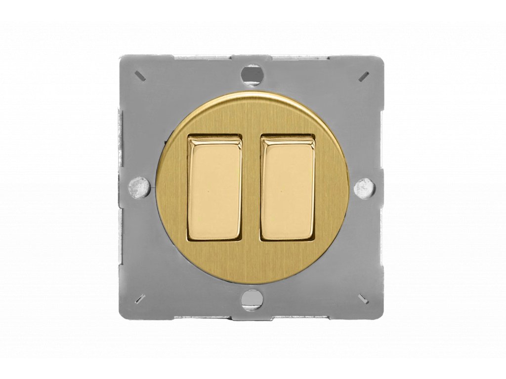 Kolébkový vypínač ROCKER - 2-modulový schodišťový (č.6); jednosměrný (č.1) 10A 1-pólový BEZŠROUBKOVÉ - kartáčovaná mosaz / mosazné kolébky