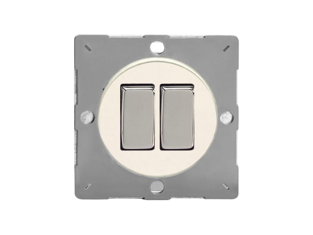 Kolébkový vypínač ROCKER - 2-modulový schodišťový (č.6); jednosměrný (č.1) 10A 1-pólový MODULÁRNÍ - matně bílá / chromová kolébka