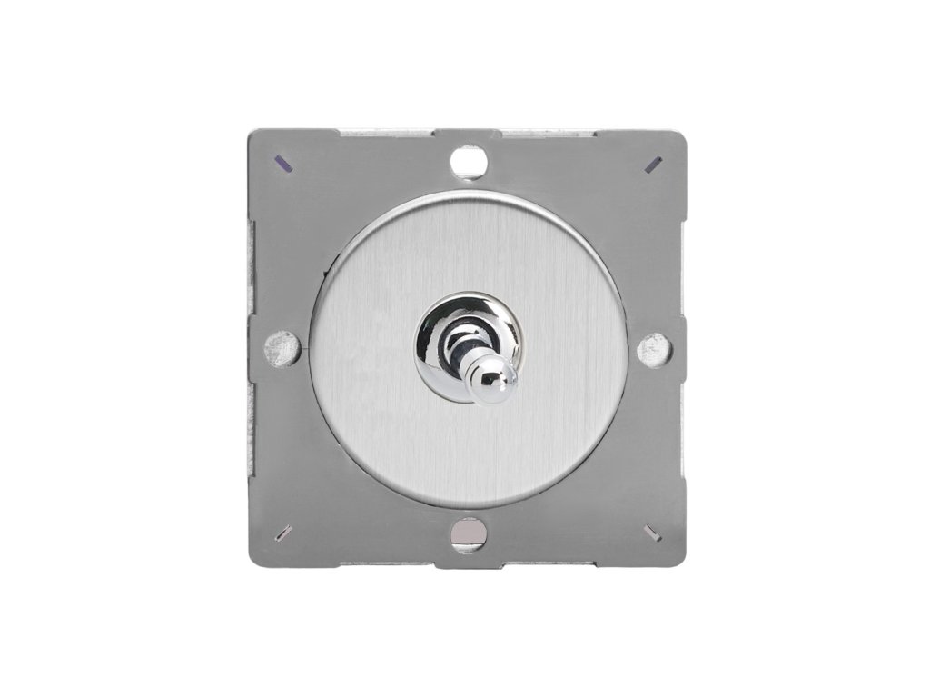 Páčkový vypínač TOGGLE - 1-modulový křížový (č.7) 10A 1-pólový MODULÁRNÍ - kartáčovaná ocel / chromová páčka