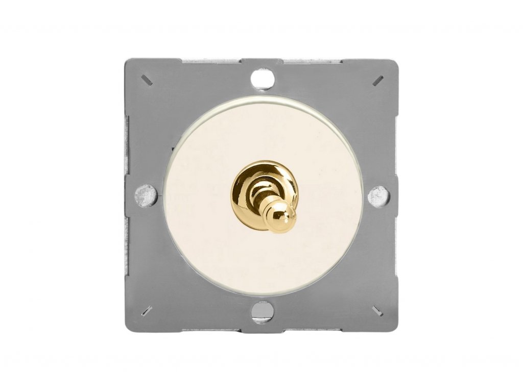 Páčkový vypínač TOGGLE - 1-modulový schodišťový (č.6); jednosměrný (č.1) 10A 1-pólový MODULÁRNÍ - matně bílá / mosazná páčka