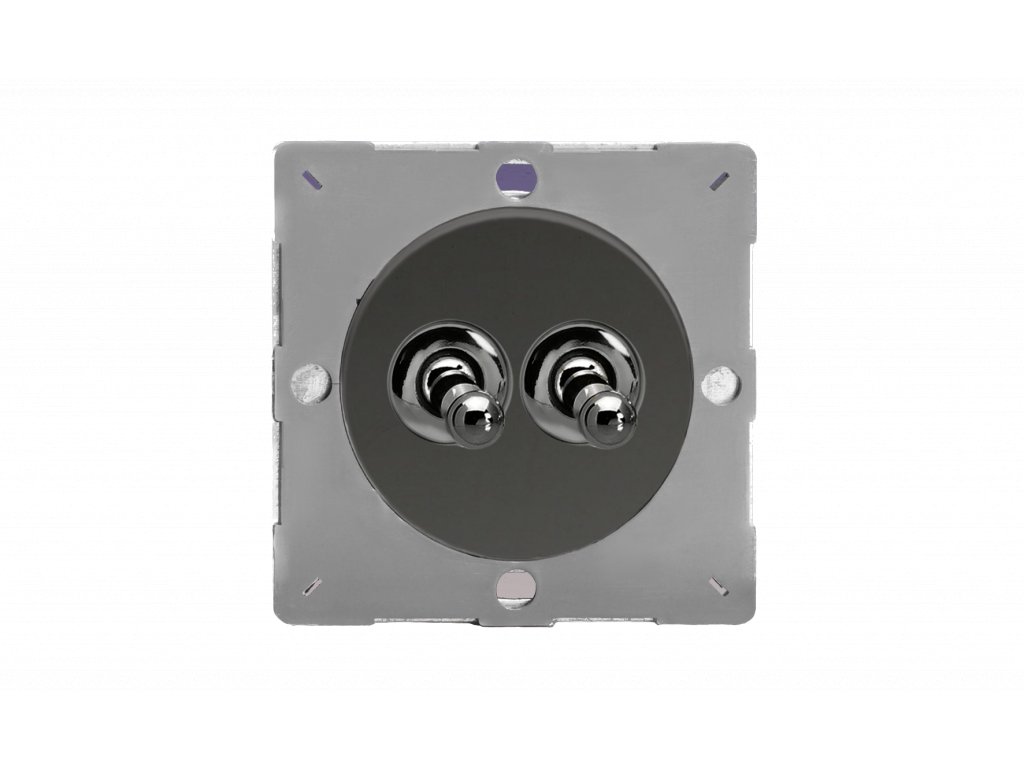 Páčkový vypínač TOGGLE - 2-modulový schodišťový (č.6); jednosměrný (č.1) 10A 1-pólový MODULÁRNÍ - černé (lesklé) iridium / černé (lesklé) iridium
