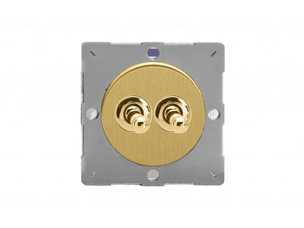 Páčkový vypínač TOGGLE - 2-modulový schodišťový (č.6); jednosměrný (č.1) 10A 1-pólový MODULÁRNÍ - kartáčovaná mosaz / mosazné páčky