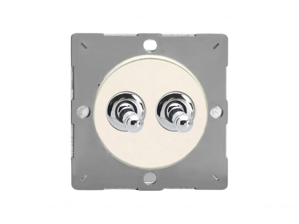 Páčkový vypínač TOGGLE - 2-modulový schodišťový (č.6); jednosměrný (č.1) 10A 1-pólový MODULÁRNÍ - matně bílá / chromová páčka