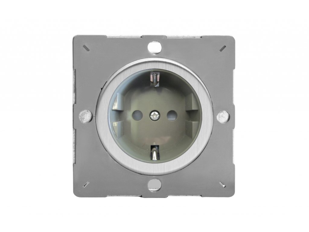 Síťová zásuvka MAINS SOCKET - 1-modulový 16A schuko BEZŠROUBKOVÉ - kartáčovaná ocel / šedá