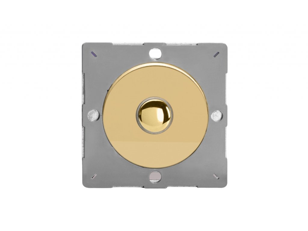 Tlačítkový vypínač IMPULSE - 1-modulový schodišťový (č.6); jednosměrný (č.1) 6A 1-pólový MODULÁRNÍ - leštěná mosaz / mosazné tlačítko
