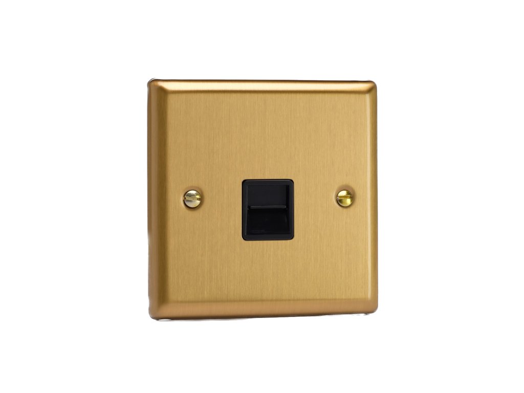 Mutimediální zásuvka MEDIA SOCKET - 1-modulový telefon KLASICKÉ - kartáèovaná mosaz / èerný