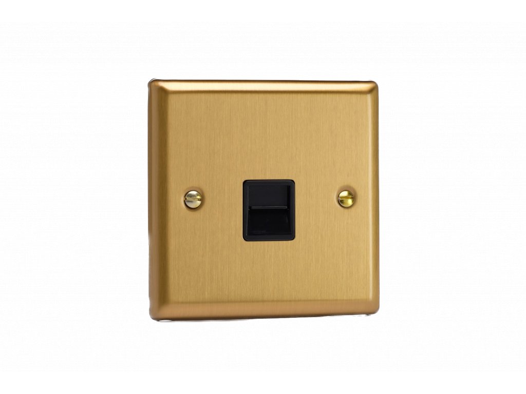 Mutimediální zásuvka MEDIA SOCKET - 1-modulový telefon KLASICKÉ - kartáčovaná mosaz / černý