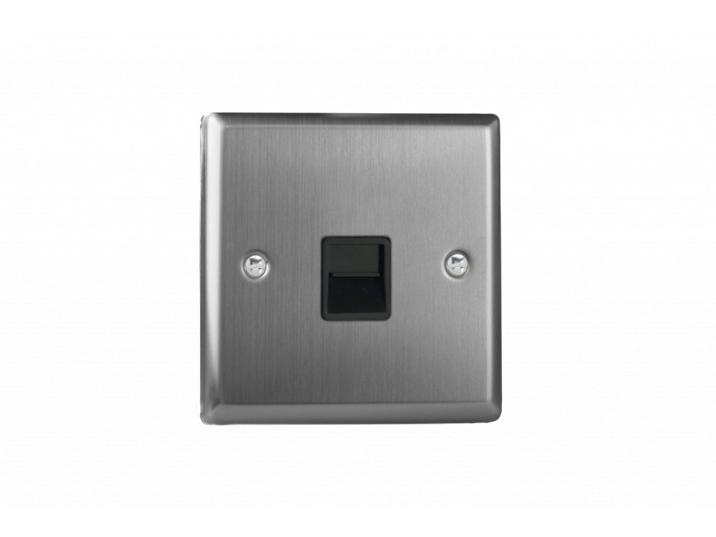 Mutimediální zásuvka MEDIA SOCKET - 1-modulový telefon KLASICKÉ - kartáčovaná ocel / černý