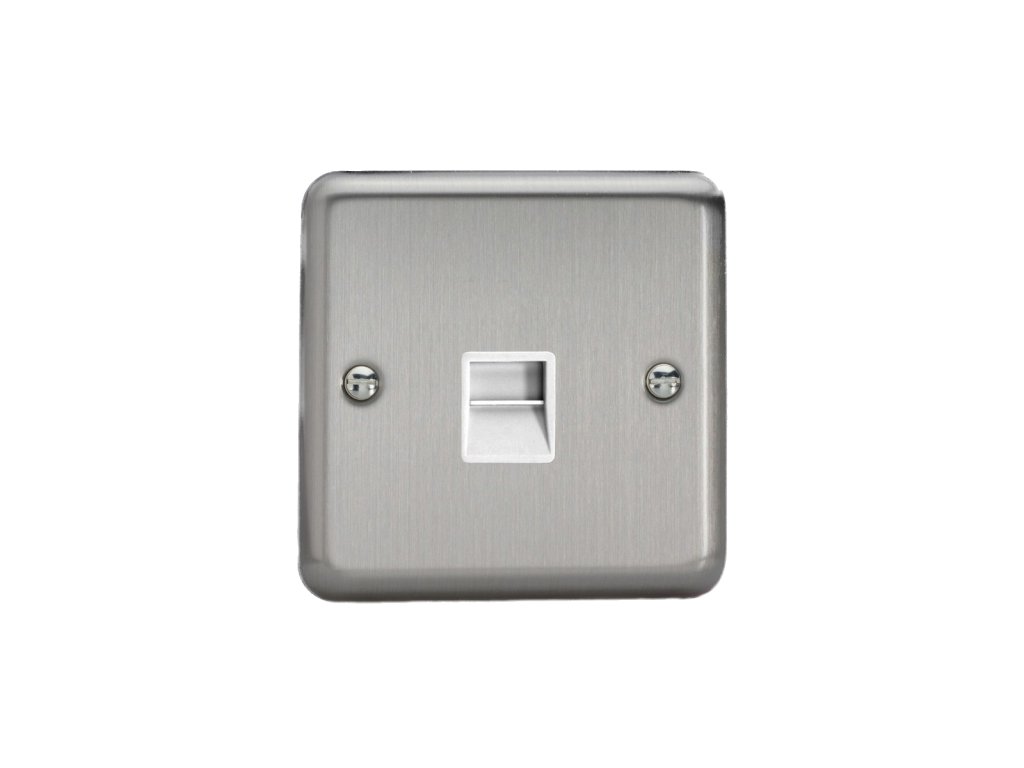 Mutimediální zásuvka MEDIA SOCKET - 1-modulový telefon KLASICKÉ - matně chromová / bílá