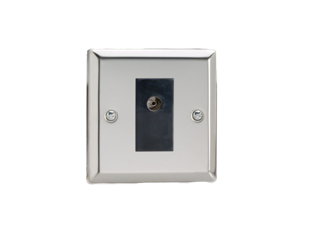 Mutimediální zásuvka MEDIA SOCKET - 1-modulový TV/Radio KLASICKÉ - leštěný chrom / černý