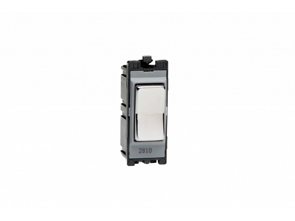 Kolébkový vypínač ROCKER - 1-modulový schodišťový (č.6) 10A 1-pólový MODULÁRNÍ - leštěný chrom / chromová kolébka
