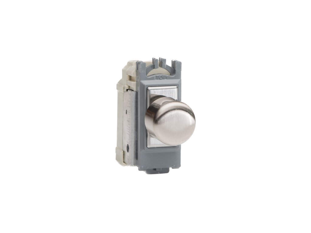 Rotační stmívač DIMMER - 1-modulový schodišťový (č.6) 0-300 W (max 30 LEDs) 2.2A 1-pólový LED MODULÁRNÍ - ocel / ocelový knoflík