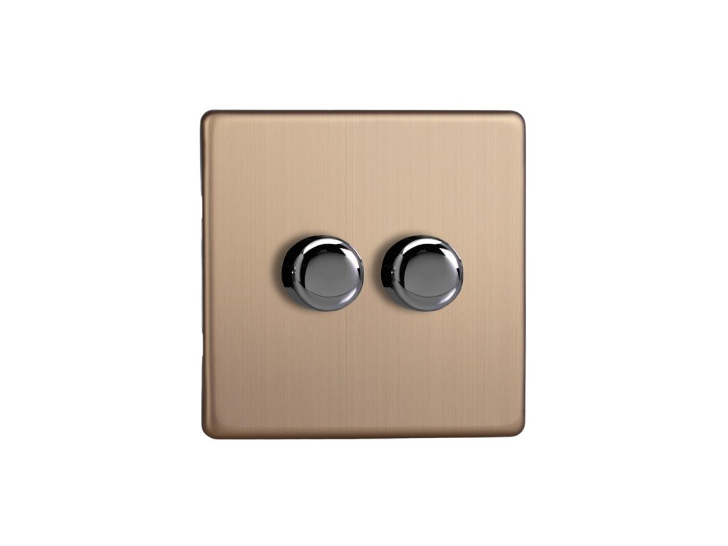 Rotační stmívač DIMMER - 2-modulový - BEZŠROUBKOVÉ - Kartáčovaná měď