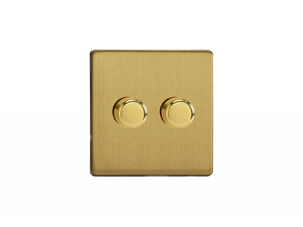 Rotační stmívač DIMMER - 2-modulový - BEZŠROUBKOVÉ - Kartáčovaná mosaz