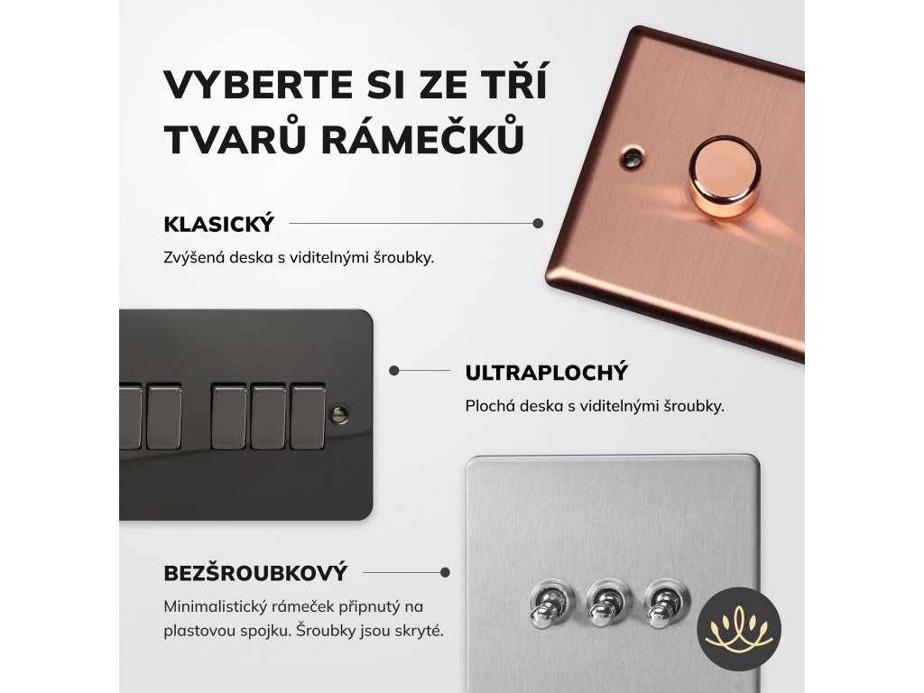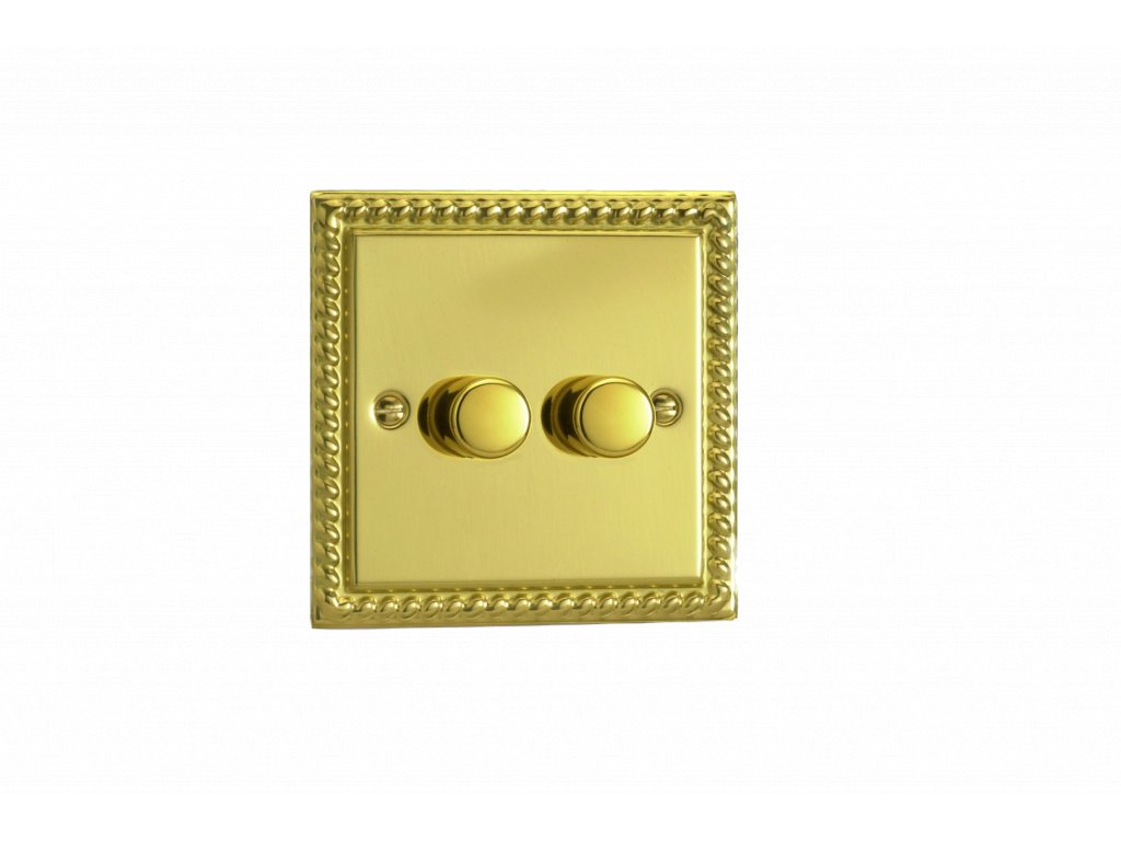 Rotační stmívač DIMMER - 2-modulový schodišťový (č.6) 0-120 W (max 10 LEDs) 0.9A 1-pólový LED KLASICKÉ - leštěná mosaz / leštěný mosazný knoflík