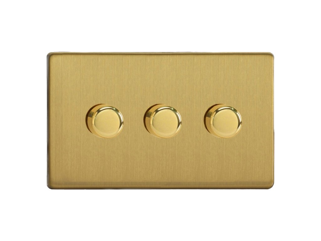 Rotační stmívač DIMMER - 3-modulový - BEZŠROUBKOVÉ - Kartáčovaná mosaz