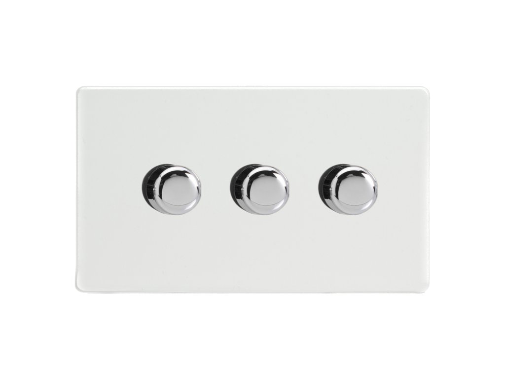 Rotační stmívač DIMMER - 3-modulový - BEZŠROUBKOVÉ - Prémiová bílá