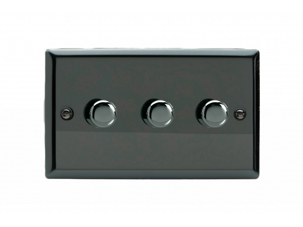 Rotační stmívač DIMMER - 3-modulový - KLASICKÉ - černé (lesklé) Iridium