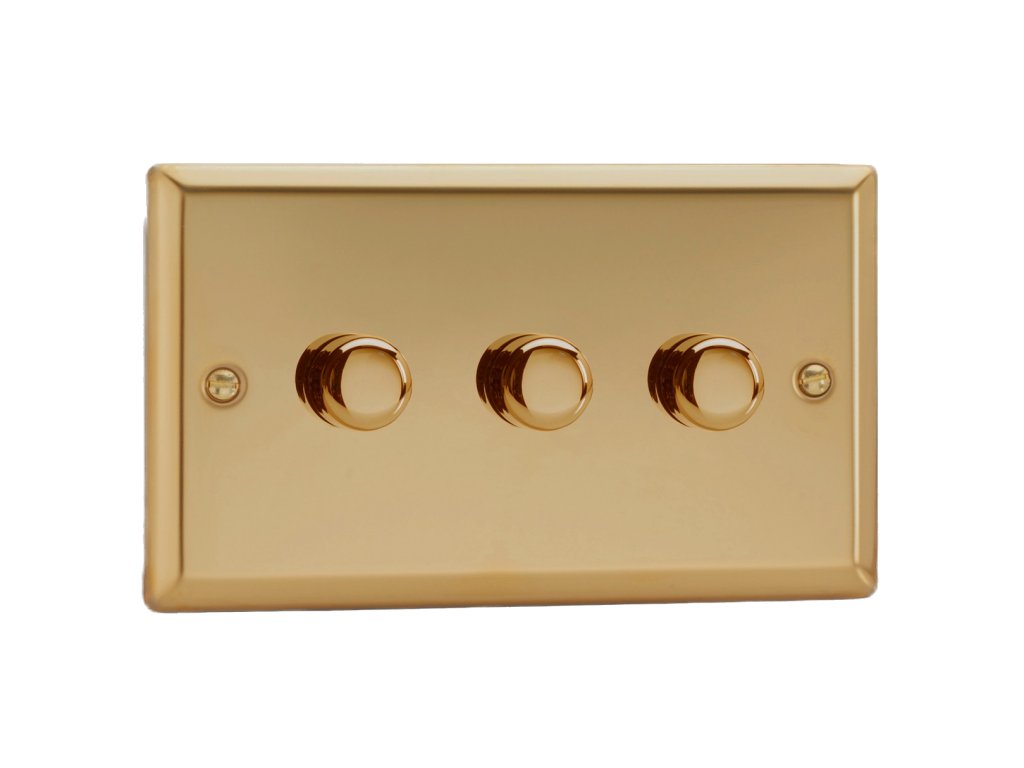 Rotaèní stmívaè DIMMER - 3-modulový schodiový (è.6) 0-120 W (max 10 LEDs) 1.1A 1-pólový LED KLASICKÉ - letìná mosaz / letìný mosazný knoflík