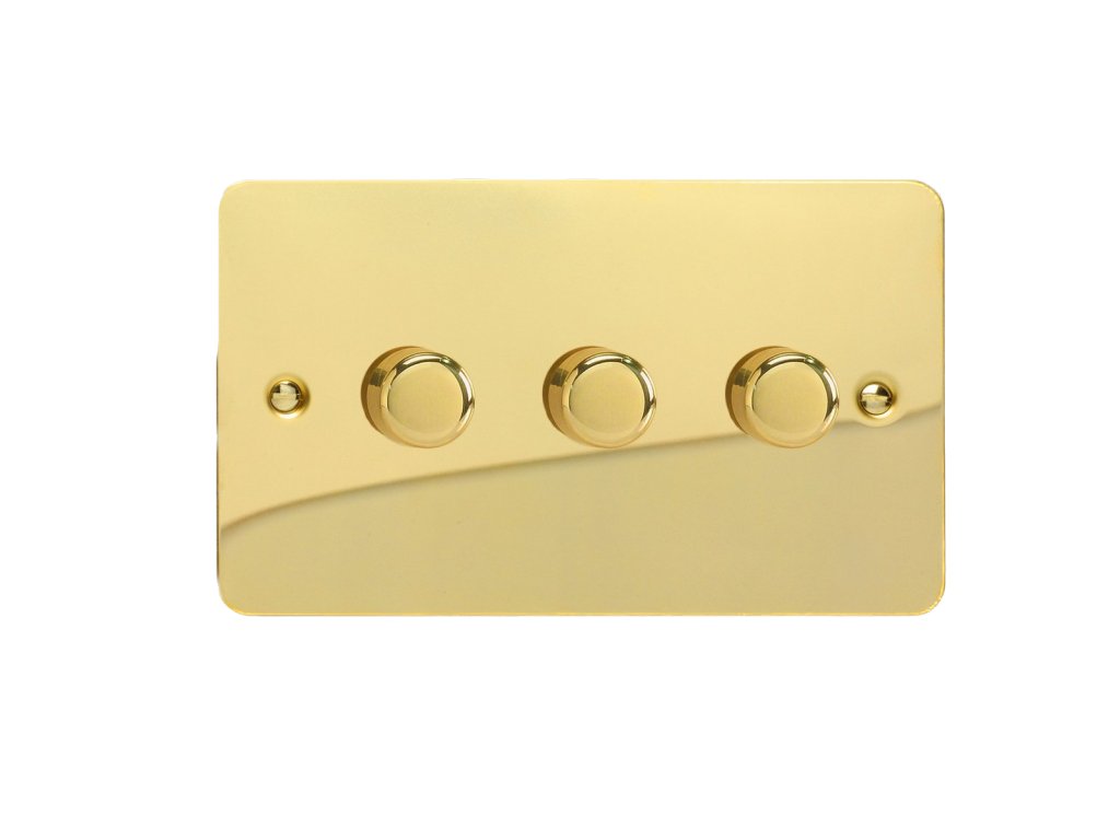 Rotační stmívač DIMMER - 3-modulový - ULTRAPLOCHÉ - Leštěná mosaz