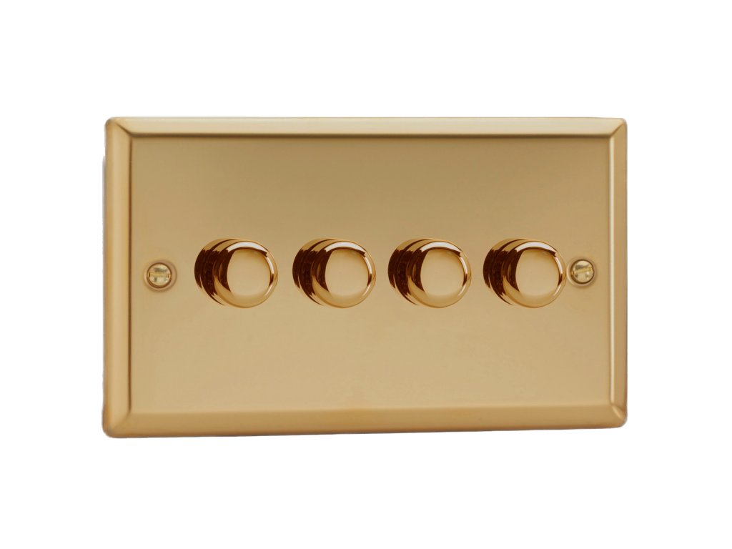 Rotaèní stmívaè DIMMER - 4-modulový schodiový (è.6) 0-120 W (max 10 LEDs) 0.9A 1-pólový LED KLASICKÉ - letìná mosaz / letìný mosazný knoflík
