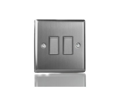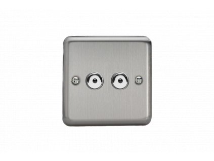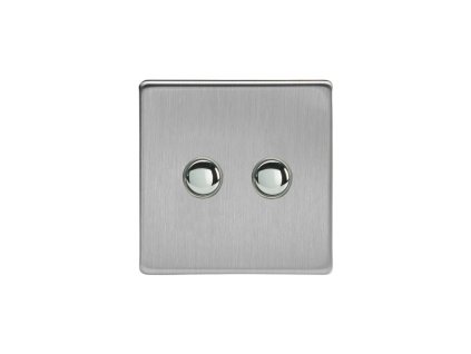 Tlaèítkový vypínaè IMPULSE - 2-modulový jednosmìrný (è.1) 6A 1-pólový momentový BEZROUBKOVÉ - kartáèovaná ocel / chromová tlaèítka