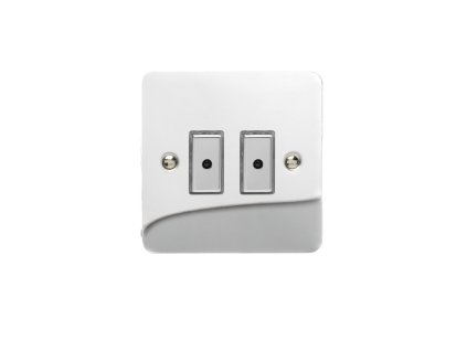 Tlaèítkový vypínaè IMPULSE - 2-modulový jednosmìrný (è.1) 6A 1-pólový momentový BEZROUBKOVÉ - matnì bílá / chrom tlaèítko