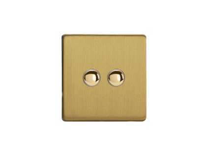 Tlaèítkový vypínaè IMPULSE - 2-modulový jednosmìrný (è.1) 6A 1-pólový momentový BEZROUBKOVÉ - kartáèovaná mosaz / mosazná tlaèítka