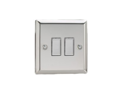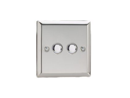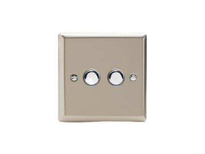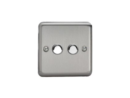 Tlaèítkový vypínaè IMPULSE - 2-modulový jednosmìrný (è.1) 6A 1-pólový momentový BEZROUBKOVÉ - kartáèovaná ocel / chromová tlaèítka