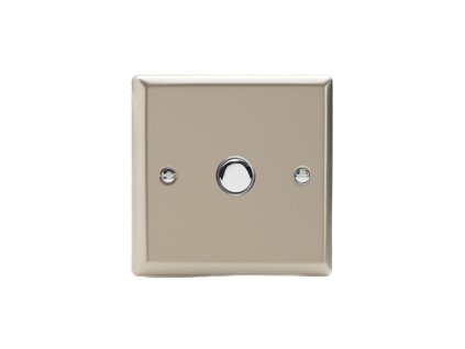 Tlaèítkový vypínaè IMPULSE - 1-modulový jednosmìrný (è.1) 10A 1-pólový momentový BEZROUBKOVÉ - kartáèovaná ocel / chrom tlaèítko