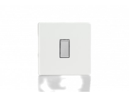 Tlaèítkový vypínaè IMPULSE - 1-modulový schodiový (è.6) 1-pólový BEZROUBKOVÉ - prémiová bílá / chrom tlaèítko