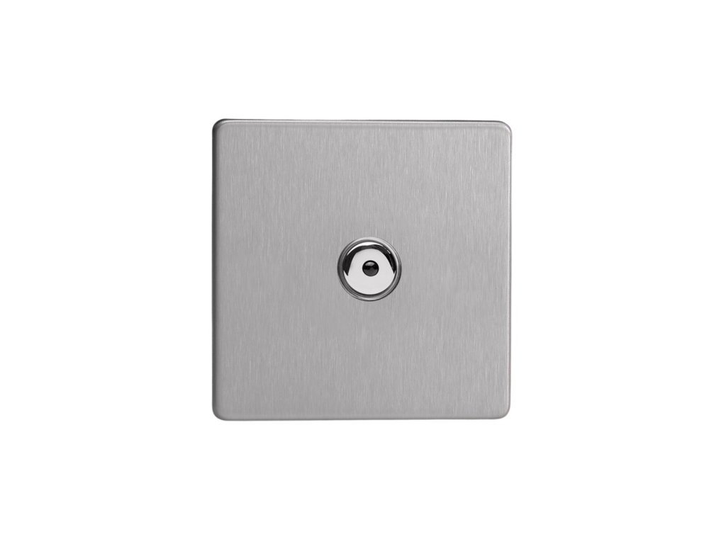 Tlaèítkový vypínaè IMPULSE - 1-modulový jednosmìrný (è.1) 0-100 W (max 10 LEDs) 1.3A 1-pólový LED s dálkovým BEZROUBKOVÉ - kartáèovaná ocel / chrom tlaèítko