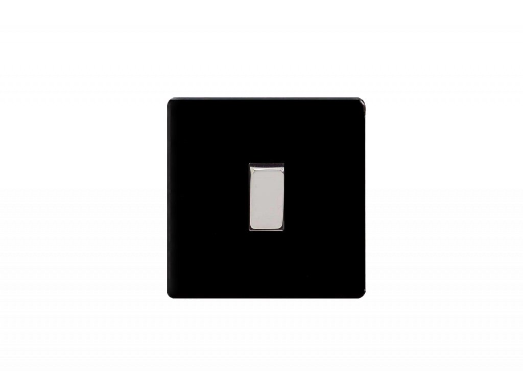 Tlačítkový vypínač IMPULSE - 1-modulový jednosměrný (č.1) 10A 1-pólový momentový BEZŠROUBKOVÉ - prémiová černá / chrom tlačítko