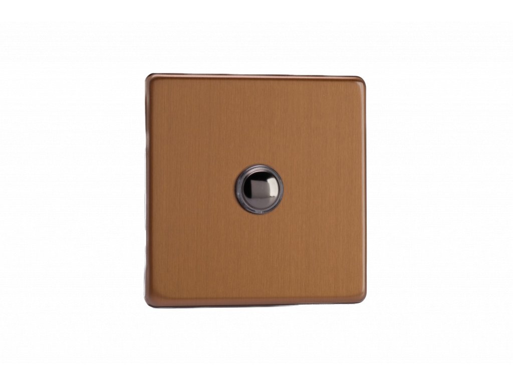 Tlačítkový vypínač IMPULSE - 1-modulový jednosměrný (č.1) 6A 1-pólový momentový BEZŠROUBKOVÉ - kartáčovaný bronz / černé (lesklé) iridium