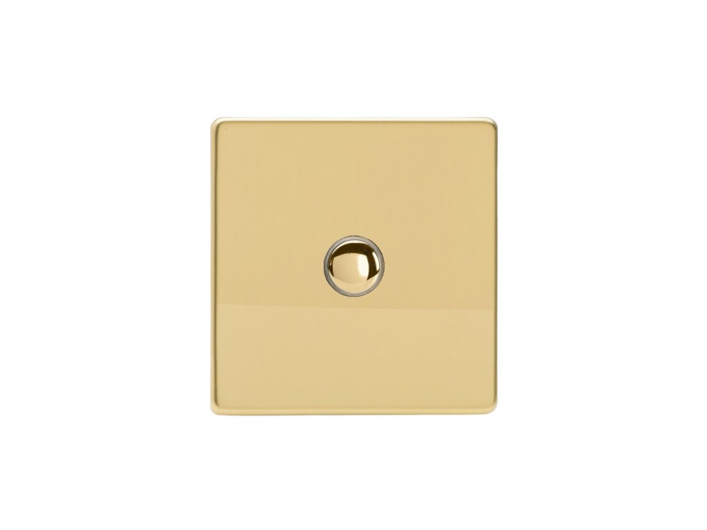 Tlačítkový vypínač IMPULSE - 1-modulový jednosměrný (č.1) 6A 1-pólový momentový BEZŠROUBKOVÉ - leštěná mosaz / mosazné tlačítko