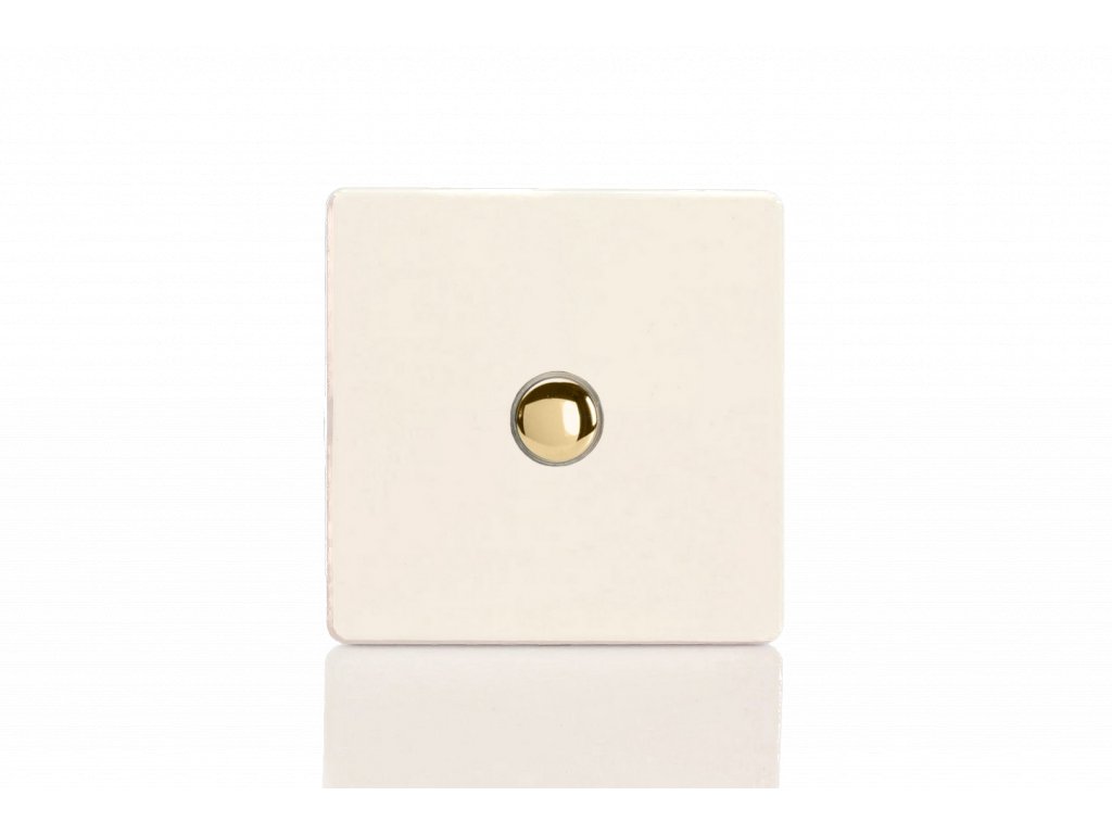 Tlaèítkový vypínaè IMPULSE - 1-modulový jednosmìrný (è.1) 6A 1-pólový momentový BEZROUBKOVÉ - matnì bílá / mosazné tlaèítko