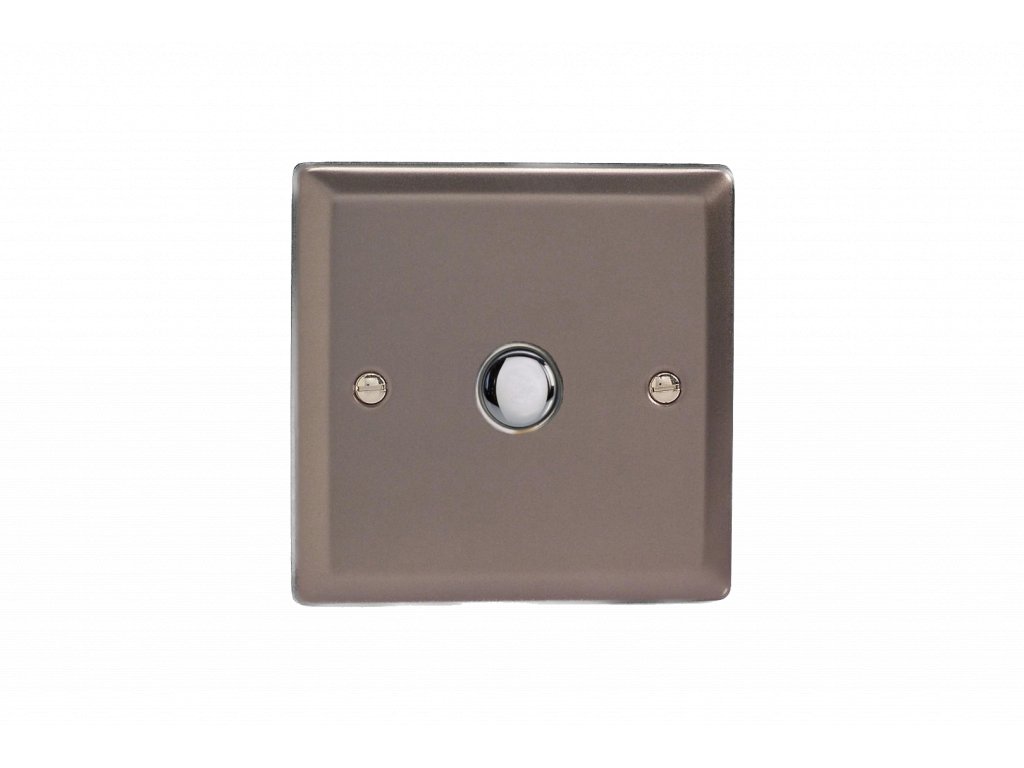 Tlačítkový vypínač IMPULSE - 1-modulový jednosměrný (č.1) 6A 1-pólový momentový KLASICKÉ - cínová / chrom tlačítko