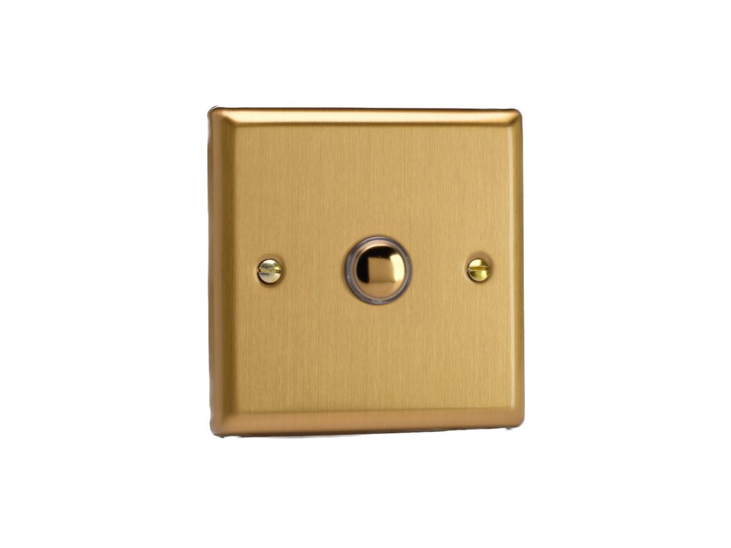 Tlačítkový vypínač IMPULSE - 1-modulový jednosměrný (č.1) 6A 1-pólový momentový KLASICKÉ - kartáčovaná mosaz / mosazné tlačítko