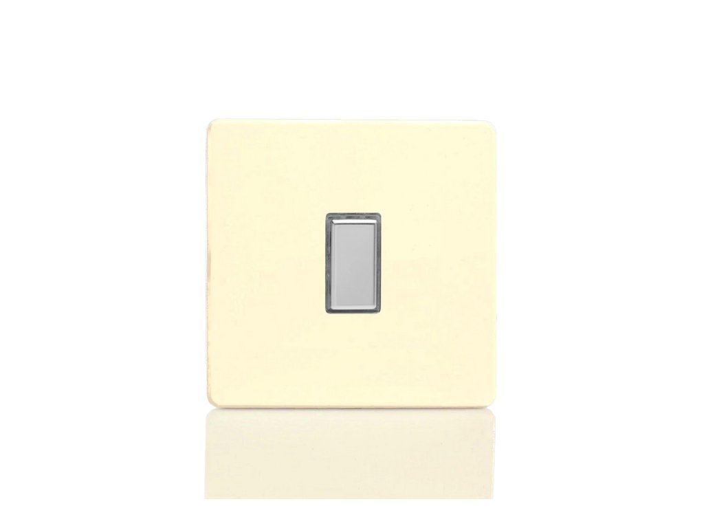 Tlačítkový vypínač IMPULSE - 1-modulový schodišťový (č.6) 1-pólový BEZŠROUBKOVÉ - bílá čokoláda / chrom tlačítko