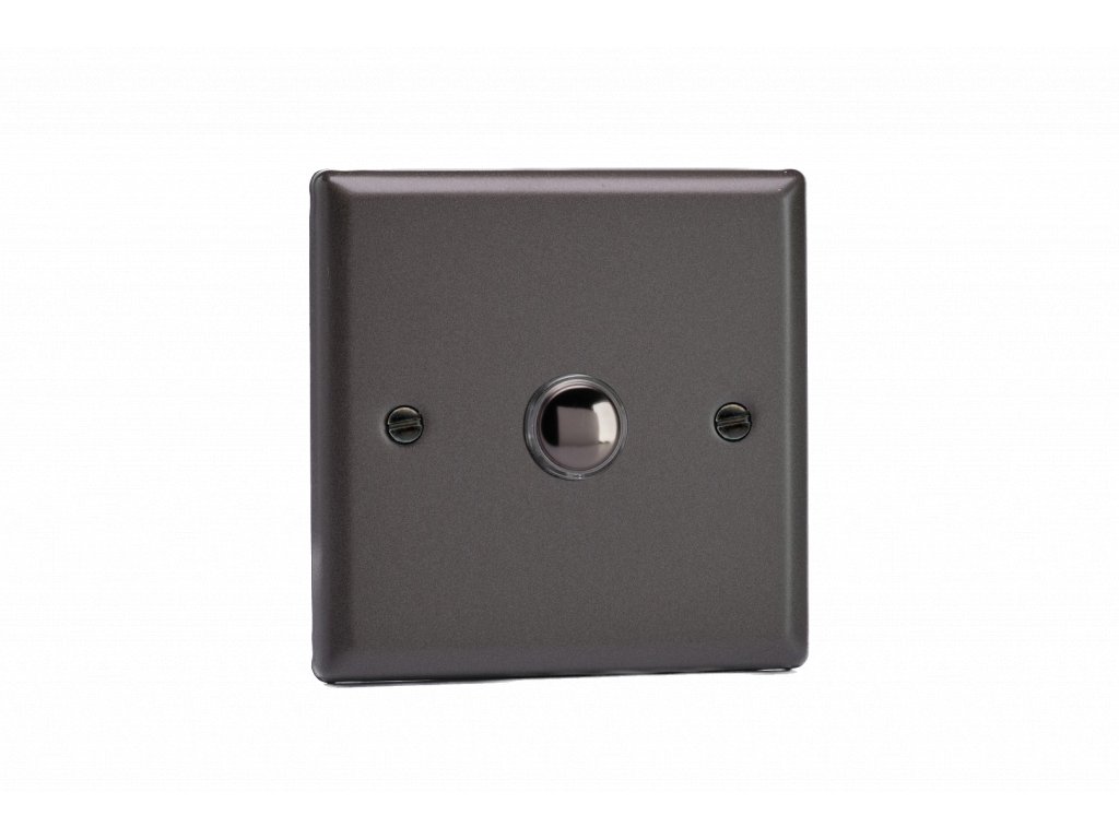 Tlačítkový vypínač IMPULSE - 1-modulový schodišťový (č.6) 1-pólový KLASICKÉ - grafit 21 / chrom tlačítko