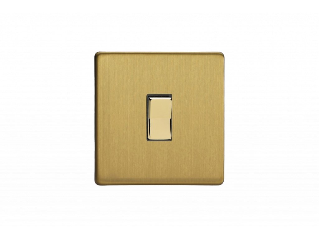Tlačítkový vypínač IMPULSE - 1-modulový schodišťový (č.6) 6A 1-pólový BEZŠROUBKOVÉ - kartáčovaná mosaz / mosazné tlačítko
