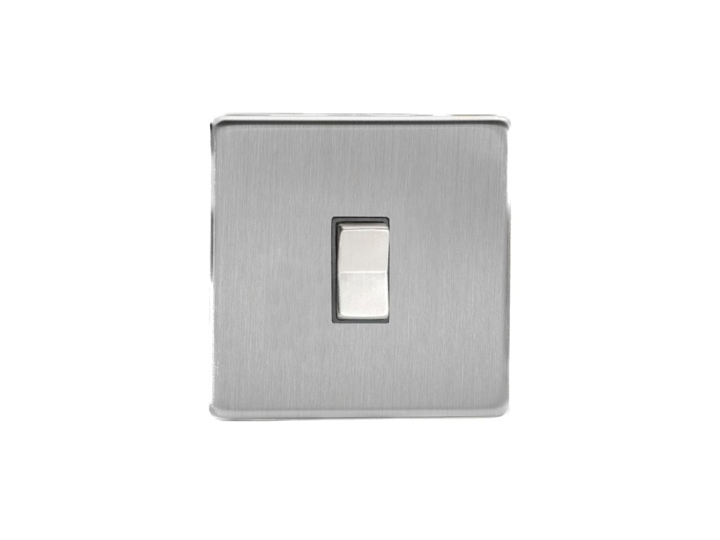 Tlaèítkový vypínaè IMPULSE - 1-modulový schodiový (è.6) 6A 1-pólový BEZROUBKOVÉ - kartáèovaná ocel / chrom tlaèítko