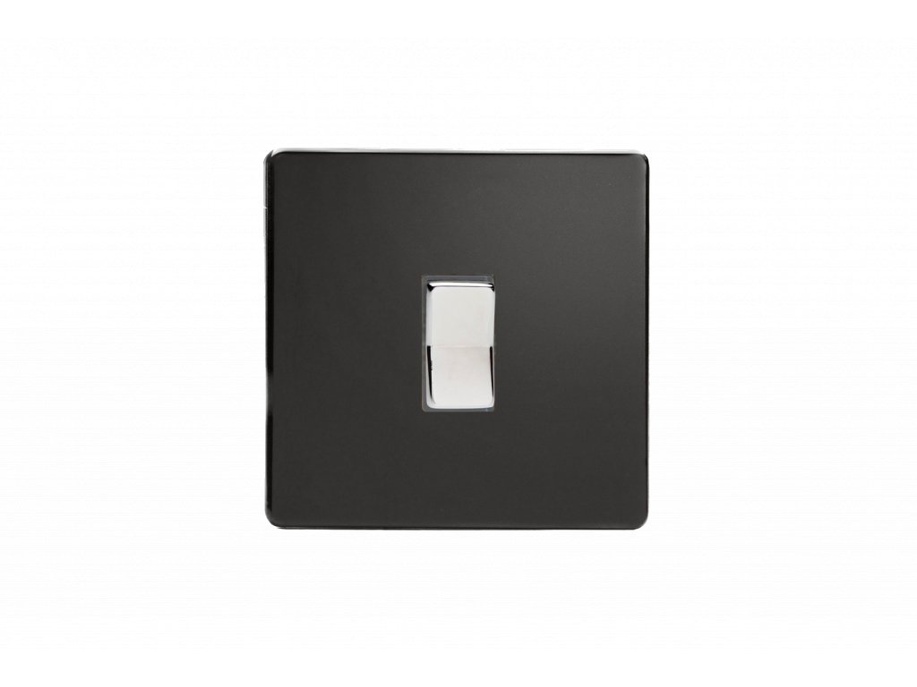 Tlaèítkový vypínaè IMPULSE - 1-modulový schodiový (è.6) 6A 1-pólový BEZROUBKOVÉ - prémiová èerná / chrom tlaèítko