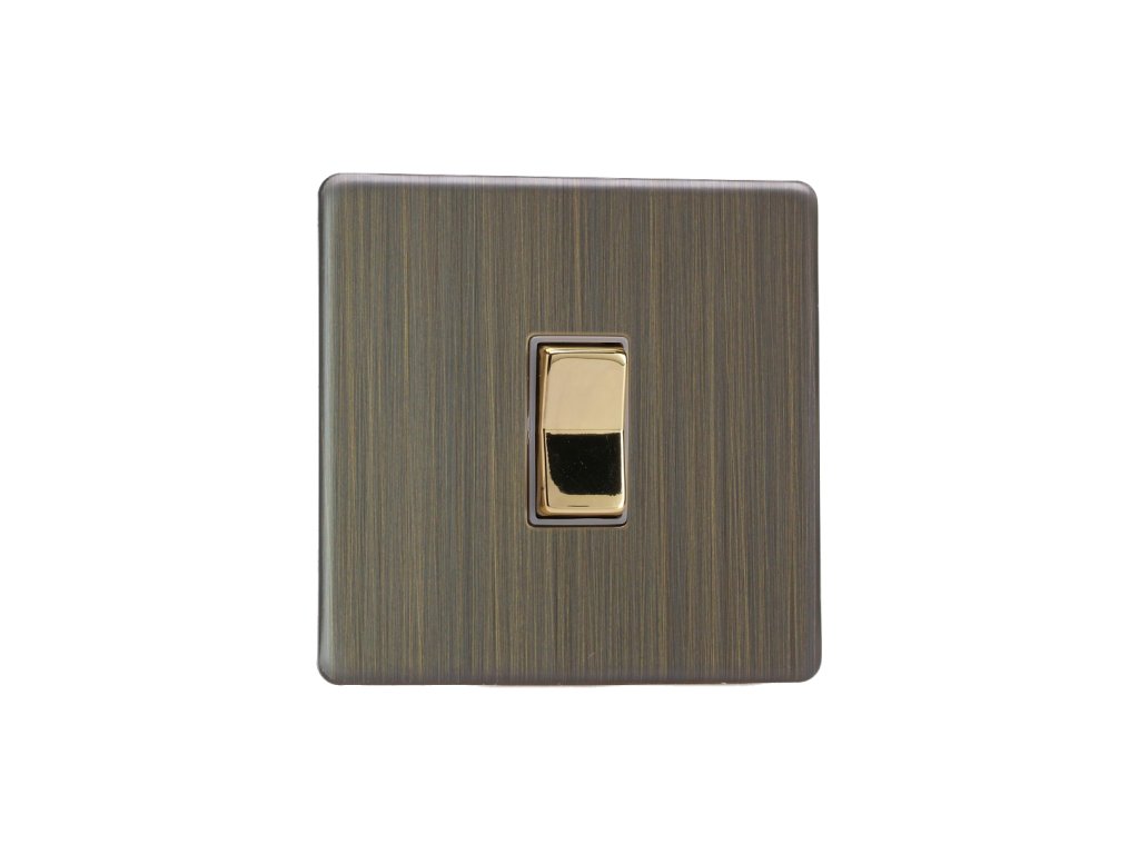 Tlaèítkový vypínaè IMPULSE - 1-modulový schodiový (è.6) 6A 1-pólový BEZROUBKOVÉ - staroitná mosaz / mosaz