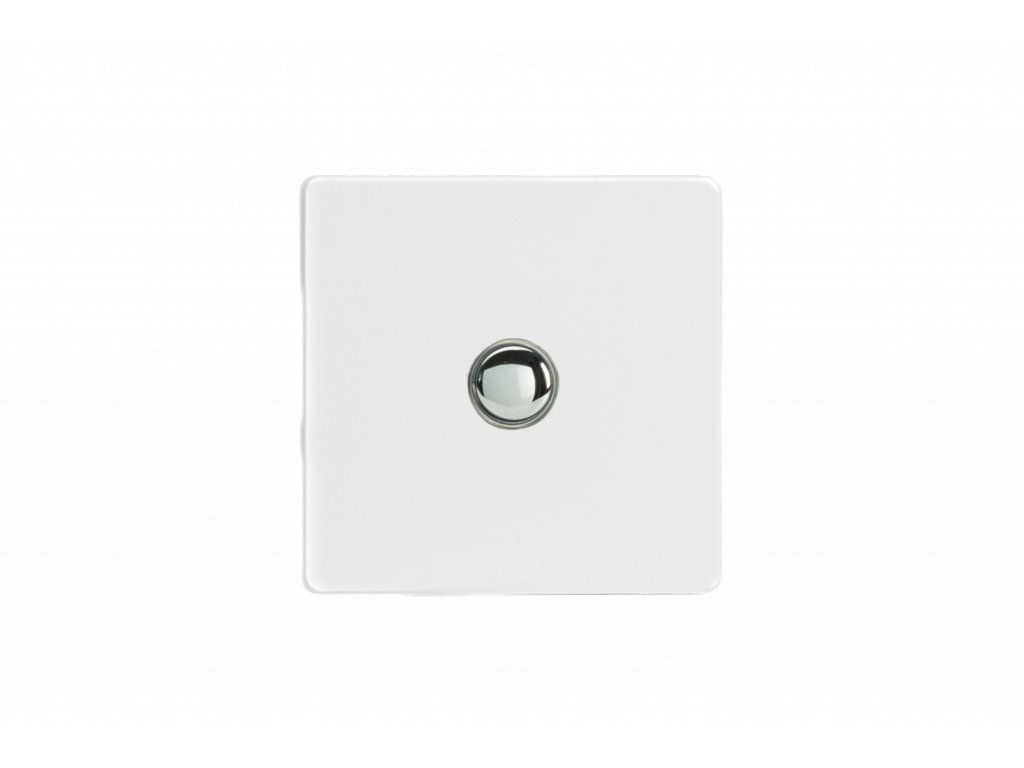 Tlaèítkový vypínaè IMPULSE - 1-modulový schodiový (è.6); jednosmìrný (è.1) 6A 1-pólový BEZROUBKOVÉ - prémiová bílá / chrom tlaèítko
