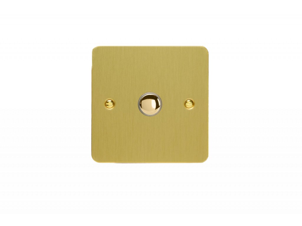 Tlaèítkový vypínaè IMPULSE - 1-modulový schodiový (è.6); jednosmìrný (è.1) 6A 1-pólový ULTRAPLOCHÉ - kartáèovaná mosaz / mosazné tlaèítko