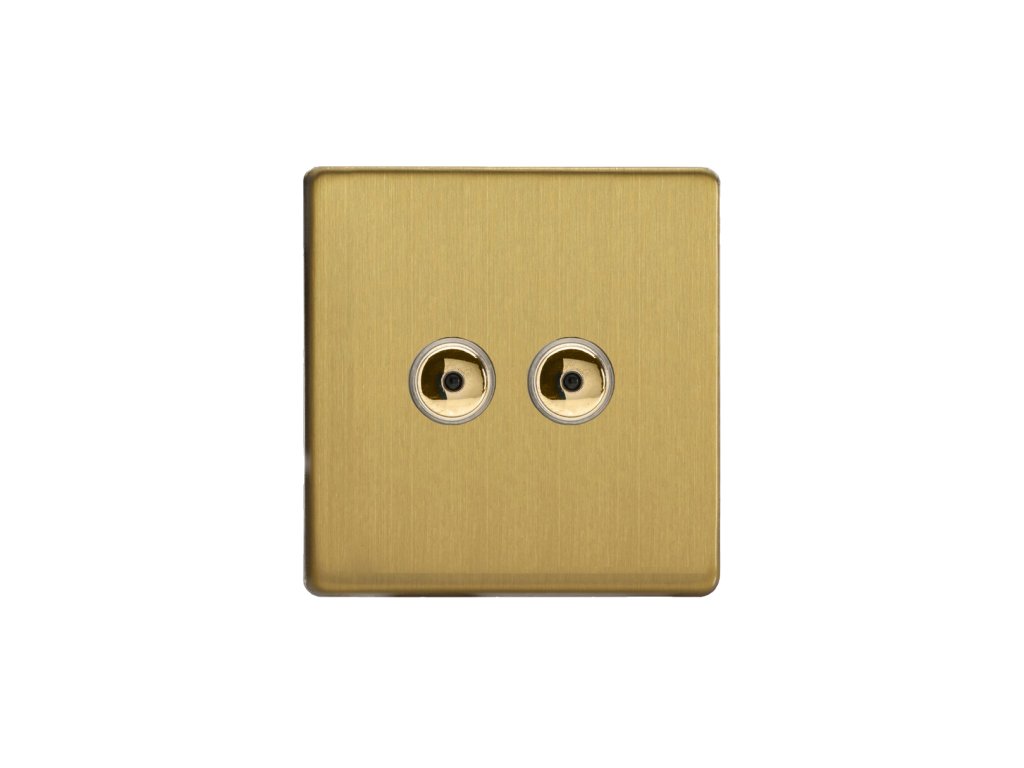 Tlaèítkový vypínaè IMPULSE - 2-modulový jednosmìrný (è.1) 0-100 W (max 10 LEDs) 0.7A 1-pólový LED s dálkovým BEZROUBKOVÉ - kartáèovaná mosaz / mosazná tlaèítka