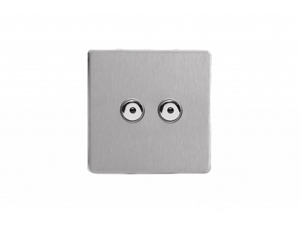 Tlačítkový vypínač IMPULSE - 2-modulový jednosměrný (č.1) 0-100 W (max 10 LEDs) 0.7A 1-pólový LED s dálkovým BEZŠROUBKOVÉ - kartáčovaná ocel / chromová tlačítka