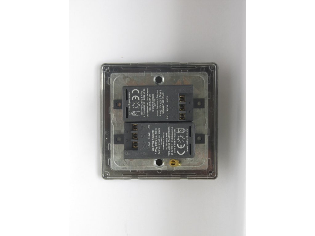 Tlačítkový vypínač IMPULSE - 2-modulový jednosměrný (č.1) 0-100 W (max 10 LEDs) 0.7A 1-pólový LED s dálkovým BEZŠROUBKOVÉ - satén / chromová tlačítka